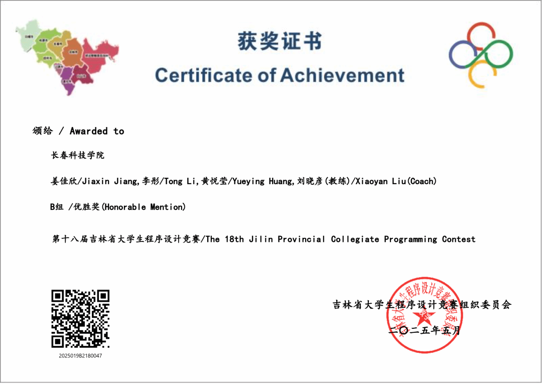 最后,向所有获奖同学表示热烈祝贺!此次竞赛不仅让同学们的编程实践能力与团队协作能力得到进一步提升,更让大家积累了宝贵的实战经验,为未来发展打下坚实基础。未来,学院将持续优化学科竞赛支持体系,以各类高水平竞赛为重要抓手,推动教学与实践深度融合,为学生搭建更多成长锻炼的优质平台,助力学子在专业领域不断突破,绽放更多光彩。