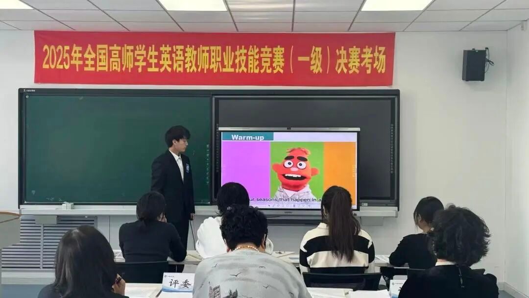 本届比赛要求选手在8分钟片段教学中,全英文展示某一教学环节或活动片段,并同步提交教学设计方案与教学视频。比赛中,教育与文化传播学院两位选手沉着自信、表现出色,以流畅的英语口语清晰阐释教学内容,在课堂导入、互动提问与总结提升等环节各展所长,充分展现了扎实的专业功底与独特的教学风格。经过一天激烈角逐,武梓恒同学荣获一级一等奖,詹家妮同学荣获二级二等奖。