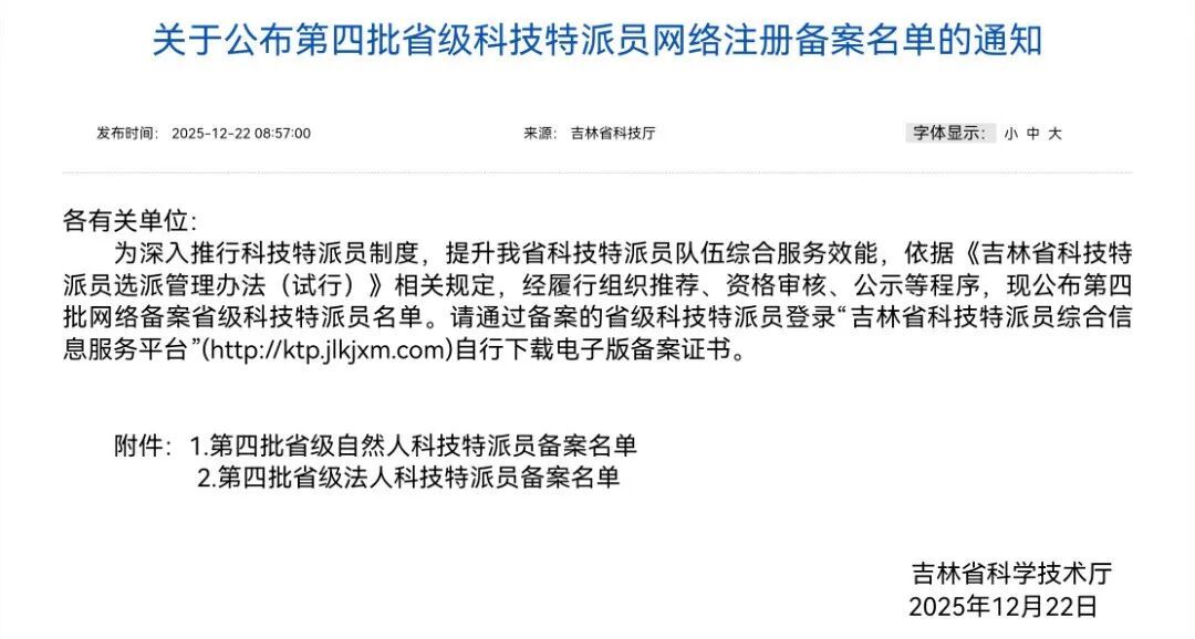 根据《吉林省科技特派员选派管理办法(试行)》,经组织推荐、资格审核等程序,我校孙孟琪、杨添泽、刘畅、王静怡、刘思雨5名教师成功入选第四批省级科技特派员备案名单,将面向地方产业发展需求,开展常态化、精准化科技服务,为我省农业现代化、乡村振兴及相关产业转型升级提供专业支撑。