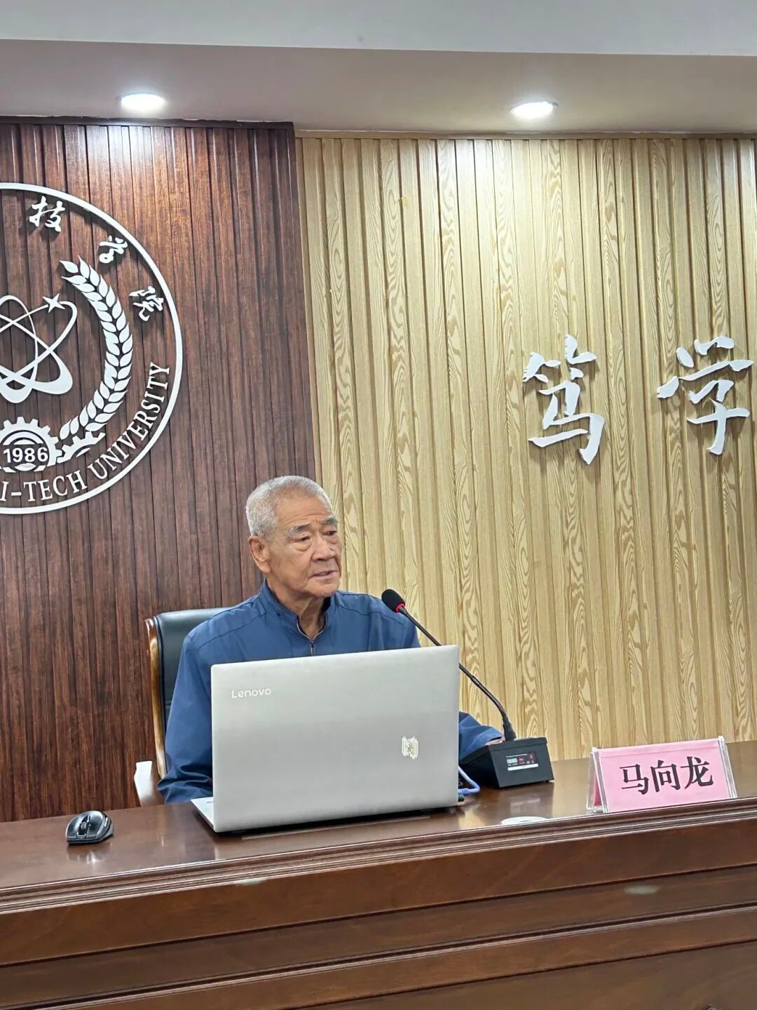 在同学们的期待的目光中,年过八旬的马向龙老人在亲人的搀扶下走到台前,虽已步履蹒跚,但眼神里的光芒却如星火般明亮,胸前戴着的党徽,像是无声的诉说着岁月里的厚重过往。他讲述1965年投身抗美援越战场的经历:防空洞压缩饼干泡水裹腹、战友因不适越南酷热气候牺牲的嘱托、胜利归来见山河无恙的热泪……老人讲到动情处声音颤抖,在场师生静静聆听,不少人红了眼眶。