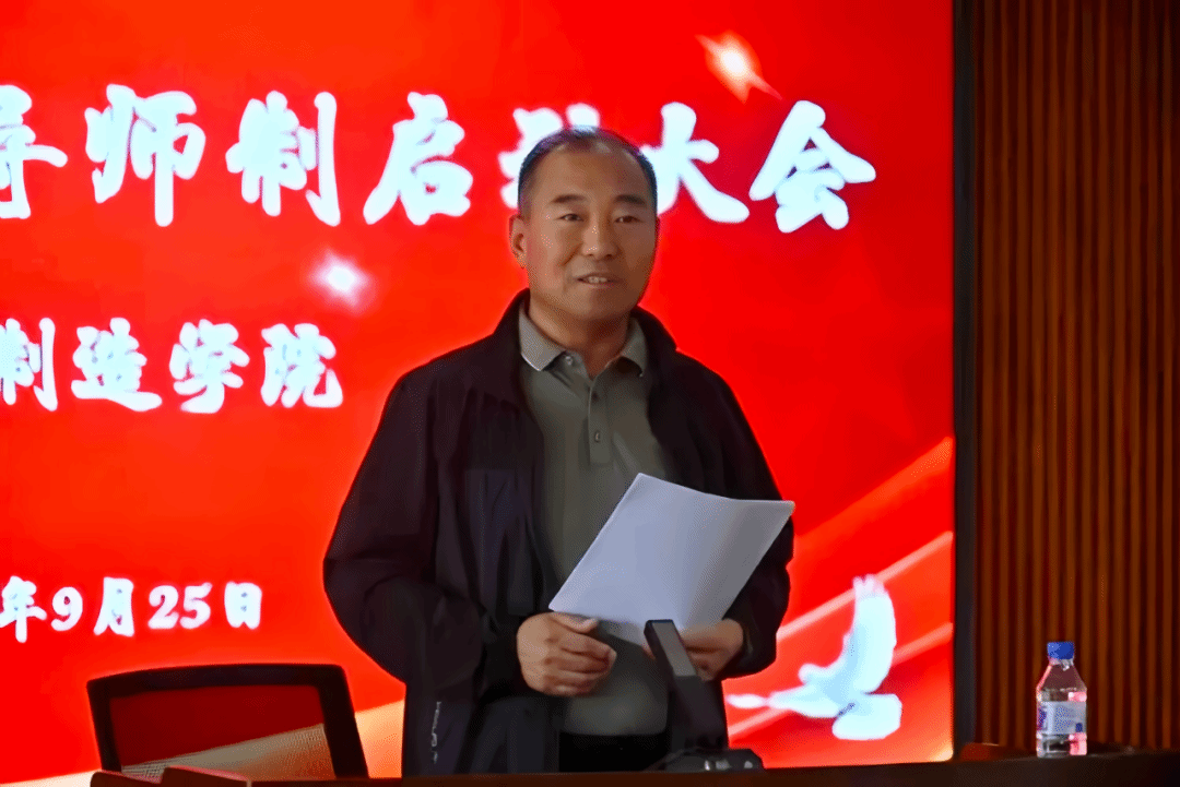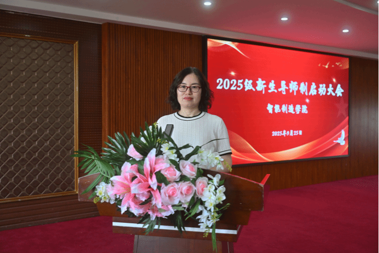 会议伊始,主持人赵雪老师对到场的领导、教师及新生们表达热烈欢迎。她提及,学院始终将学生成长与人才培养放在核心位置,此次推行的学生导师制度意义重大。赵雪老师简要介绍《智能制造学院关于推行学生导师制度的实施办法(试行)》的核心内容,以“三全育人”理念为引领,遵循协同育人、专业导向、服务发展三大原则,界定了导师在心理与学业指导、日常工作推进等方面的职责,同时规范导师选聘条件、程序及考核激励机制,为制度落地实施提供清晰指引。
