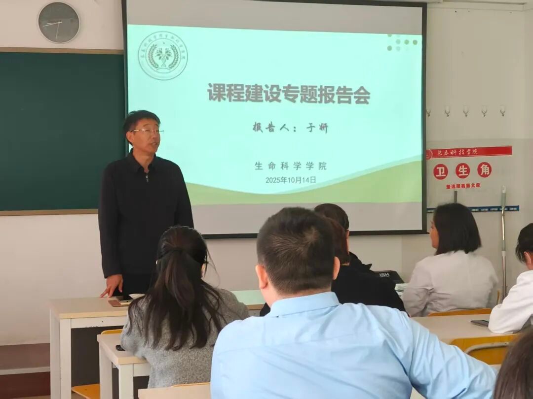 2025年10月14日,生命科学学院在4513教室召开“课程建设”专题报告。会议由生命科学学院院长李国江主持人,国家级一流本科课程《动物生物学》负责人于妍教授为主讲人,学院全体教师参加会议。报告内容聚焦课程建设核心要义,分享一流课程打造经验,为学院课程质量提升与人才培养提质增效注入新动能。