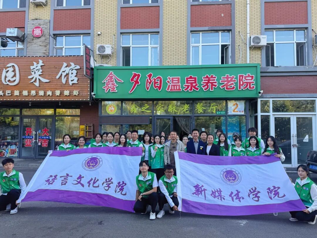 在开展短视频创作的同时,语言文化学院、新媒体学院蒲公英筑梦公益团前往鑫夕阳养老院开展慰问活动,将专业实践与社会服务深度融合。志愿者们发挥专业特长,为老人们表演了歌曲、舞蹈、朗诵等文艺节目。当《我和我的祖国》旋律响起时,老人们眼含热泪与志愿者齐声合唱,场面温馨感人。表演结束后,同学们还与老人一起包饺子,在亲密互动中传递温暖关怀,这些动人场景也成为“幸福双阳”主题创作的生动素材。