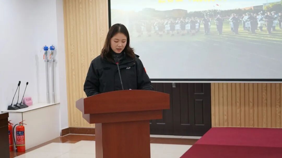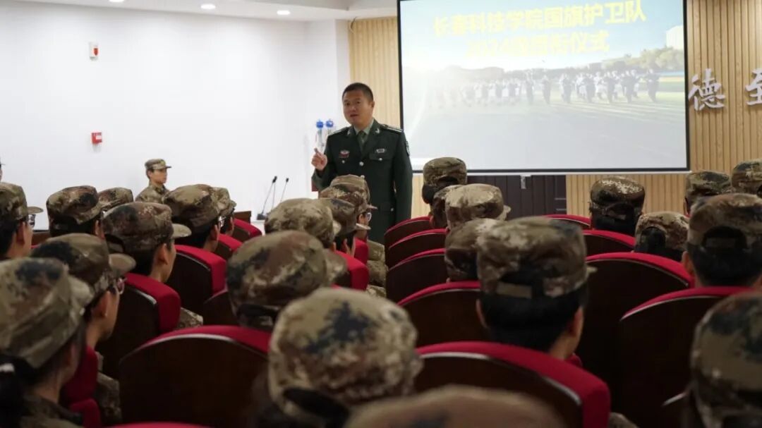 随后,国旗护卫队特聘教官、原中国人民解放军仪仗司礼大队队员李方琪作为教官代表发言。她结合自身在国家和军队重大活动中的经历,激励队员们要恪守细节、追求卓越,用最高的标准护卫国旗尊严,展现长科学子的风采。