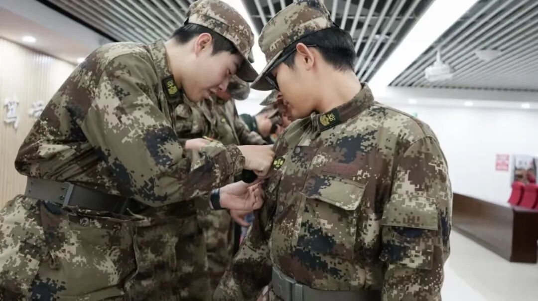 随后,仪式进入核心环节——授衔。在激昂的乐声中,各位教官为24级队员佩戴上象征荣誉与责任的长春科技学院国旗护卫队臂章。臂章在肩,使命在心,新队员们神情庄重,眼神中充满了坚定与自豪。