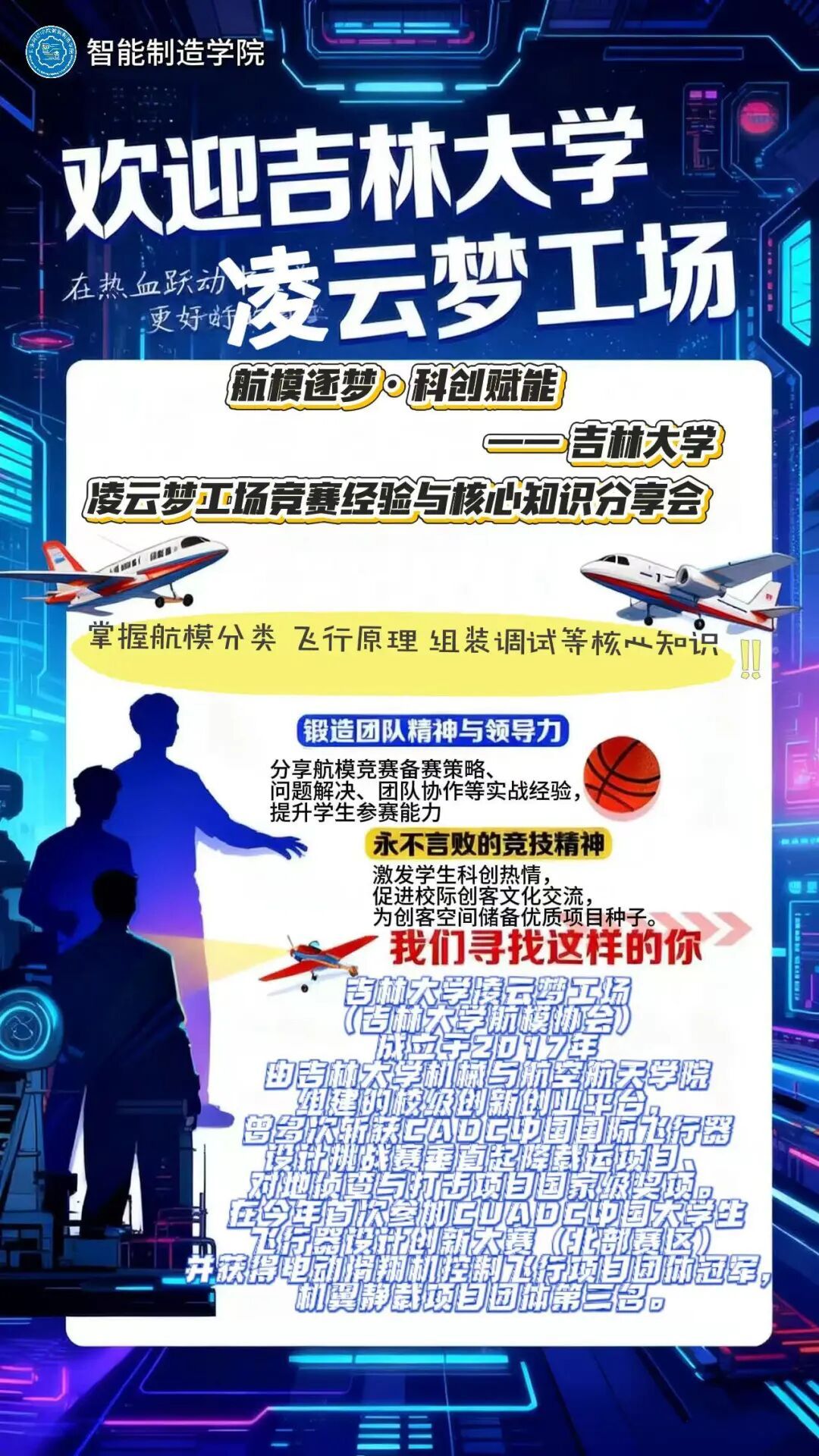 通过本次吉林大学凌云梦工场竞赛经验与核心知识分享会,同学们收获了航模知识与竞赛技巧,更激发了大家的创新热情。未来,智能制造学院智能车与无人机创客空间协会将继续开展更多优质活动,助力同学们在科创道路上逐梦前行!