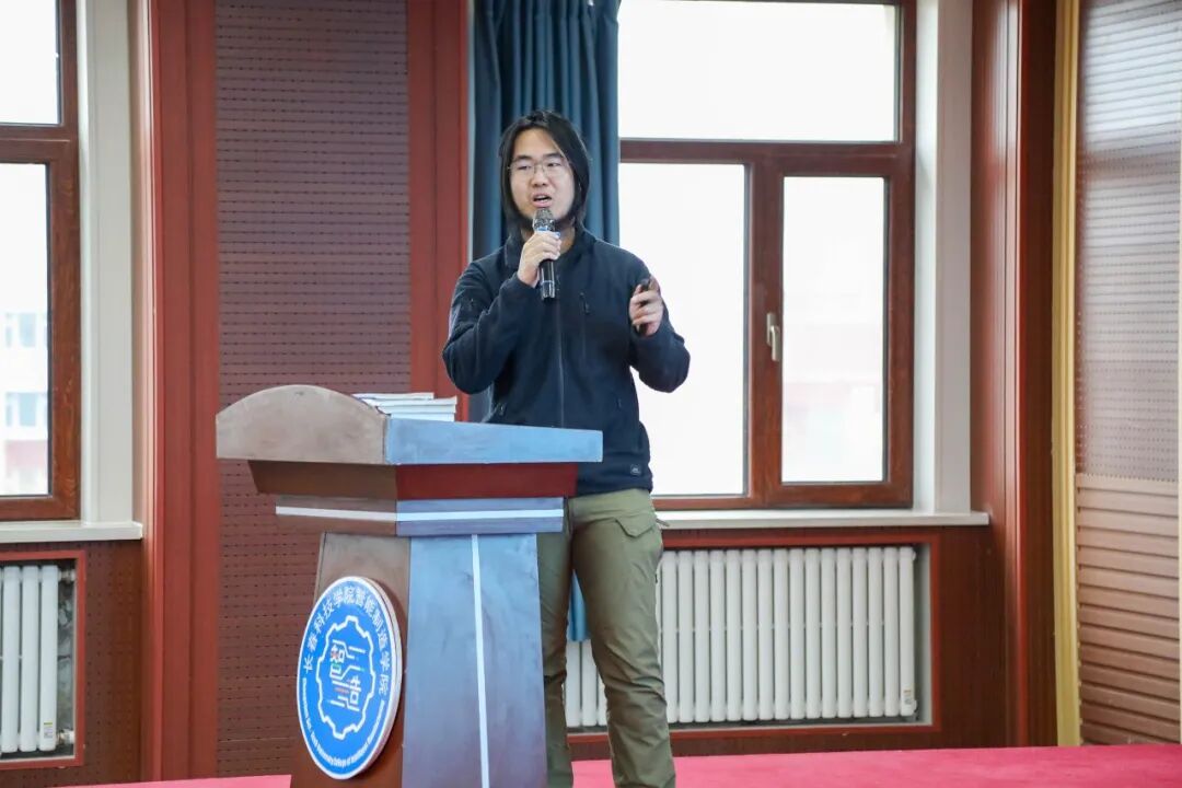 在分享环节的最后,智能制造学院袁建栋老师为本次分享会做了总结发言。 他首先对吉林大学凌云梦工场两位学长的倾囊相授表示衷心感谢,并对智能车与无人机创客空间协会成功举办此次活动给予了高度评价。袁老师指出,航模制作与竞赛是理论与实践结合的绝佳平台,能够有效锻炼同学们的工程实践能力、团队协作精神和解决复杂问题的能力。他鼓励同学们要将今天学到的知识和感受到的热情,转化为未来投身科创实践的动力,积极探索,勇于尝试,在挑战中成长,在实践中创新,努力成为新时代需要的创新型人才。