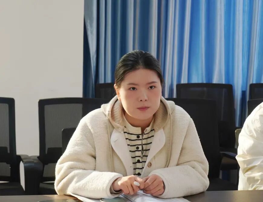 然后,辅导员老师张月则对校奖学金、助学金等表格核对工作进行了详细汇报,确保各项资助数据准确无误。她表示,将持续严把数据质量关,确保各项数据真实准确、无一疏漏,切实保障奖助学金政策精准落地,维护学生的切身利益。