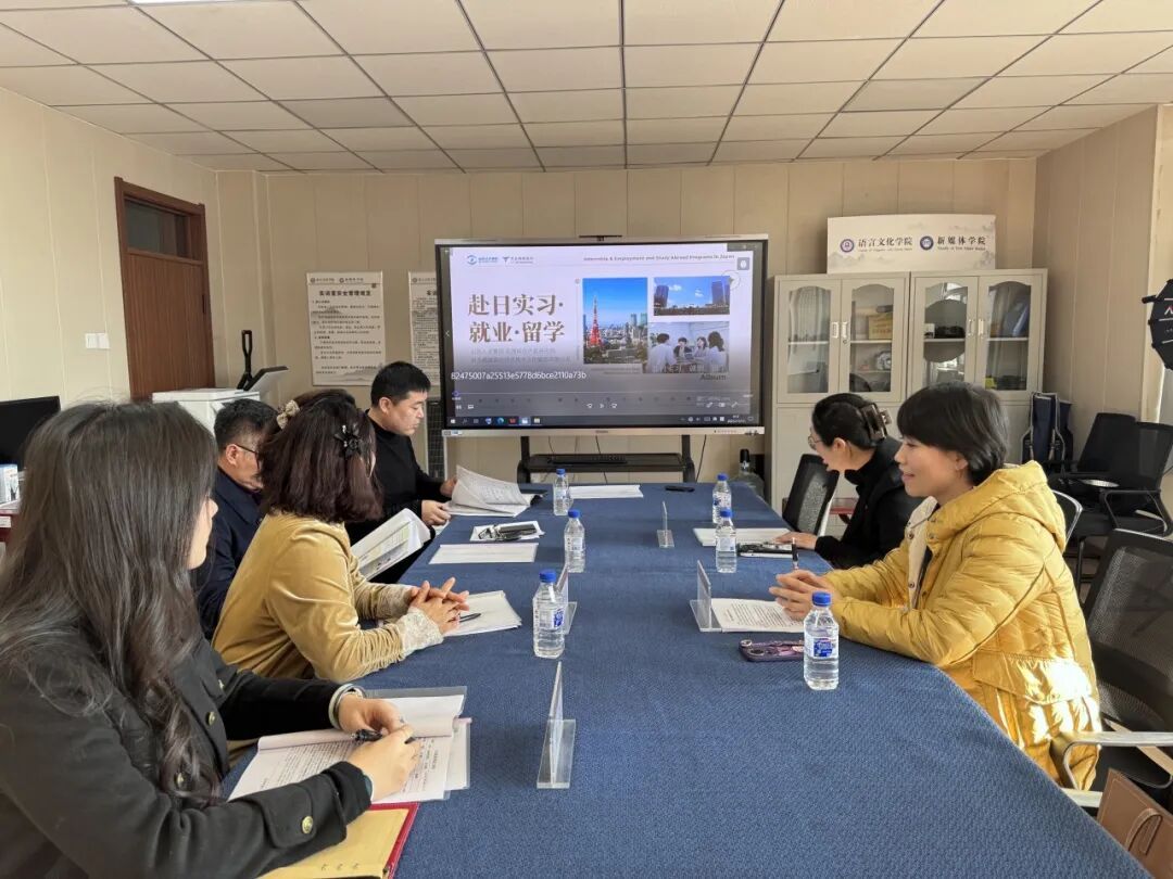 为进一步拓宽学生实习与就业渠道,推动国际化人才培养,11月13日上午,语言文化学院、新媒体学院唐敬仙院长、张贺亮副书记、金秀英副院长和日语专业康健老师与青岛鹏腾国际经济技术合作集团有限公司代表举行合作交流会议。青岛鹏腾国际人力资源负责人刘黎静经理、日本项目负责人刘宏经理出席会议,双方围绕学生赴日实习、就业与留学项目展开深入交流。