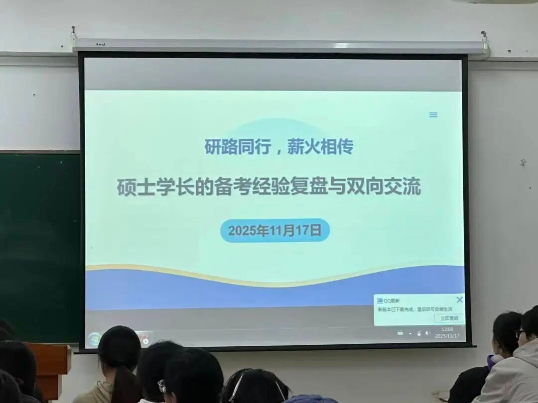 为助力动物医学专业学子明确考研方向、提升备考效率,切实解决备考过程中的重点难点问题,11月17日下午1点,生命科学学院2025届动物医学专业毕业生郭嘉良学长在4605教室举行考研经验分享交流会。本次活动围绕动物医学专业考研备考展开,郭嘉良学长结合自身考取吉林农业大学动物医学专业硕士研究生的经历,从院校专业优势、备考实操策略、复试衔接要点等方面进行专业分享,为22级、23级动物医学学生提供系统化的考研指引。