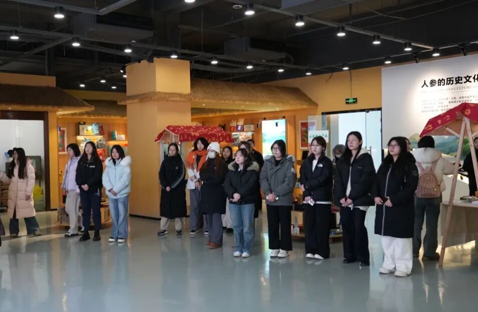 参观完报史馆,师生来到“吉字号”特产甄选展厅,感受媒体助力地方产业的创新路径。展厅讲解员重点介绍了“吉字号”特产的甄选标准、运营模式及合作案例,展示了长白山人参、绿色农产品等吉林特色产业,学生们近距离体验了吉林省优质产业的文化传播路径,直观理解了媒体与产业融合发展的模式,为解释专业实践育人工作起到了促进作用。