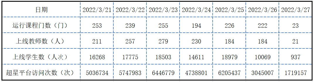 (图1:线上教学第三周课程开出情况)