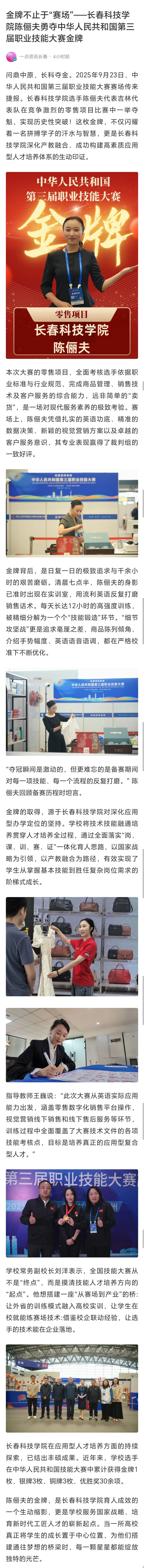 金牌不止于“赛场”——长春科技学院陈俪夫勇夺中华人民共和国第三届职业技能大赛金牌