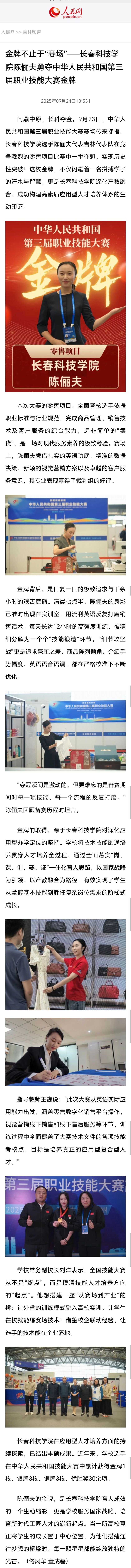 金牌不止于“赛场”——长春科技学院陈俪夫勇夺中华人民共和国第三届职业技能大赛金牌