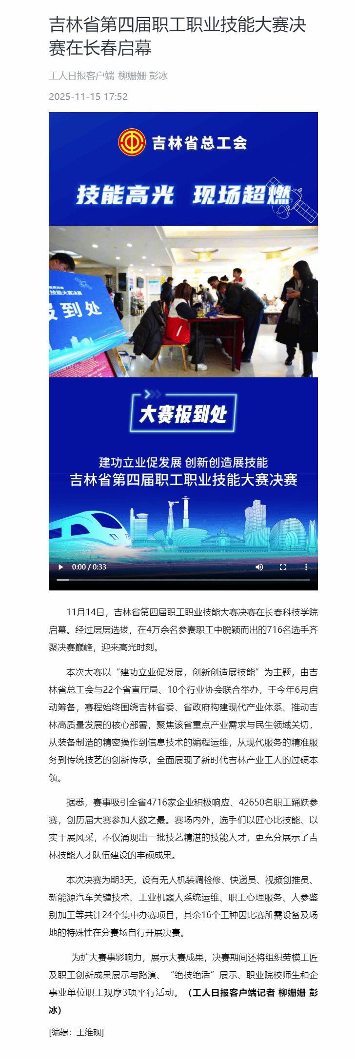吉林省第四届职工职业技能大赛决赛在长春启幕
