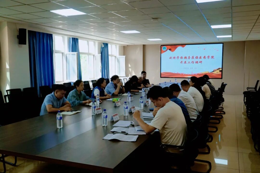 为进一步推进产教融合工作,优化人才培养方案,9月1日,长春科技学院副校长张代治、教务处处长宋卓、教学质量评价中心主任张晓晖等一行莅临我院开展工作调研。此次调研重点了解产教融合推进情况及人才培养方案修订情况,旨在掌握实际工作中的具体问题,精准破解人才培养方案修订中的难点,为提升应用型人才培养质量奠定基础。医药学院领导班子、各专业主任参加会议。