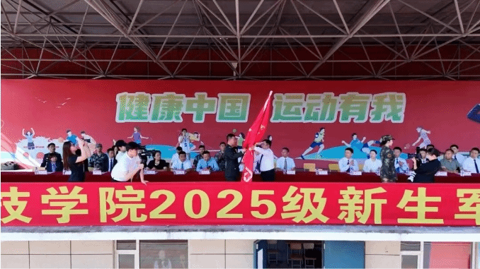 大会最后,党委书记崔高嵩向军训团总教官张帅授予军训团团旗。随着总教官接过飘扬的团旗,长春科技学院2025级新生军训正式启动。
