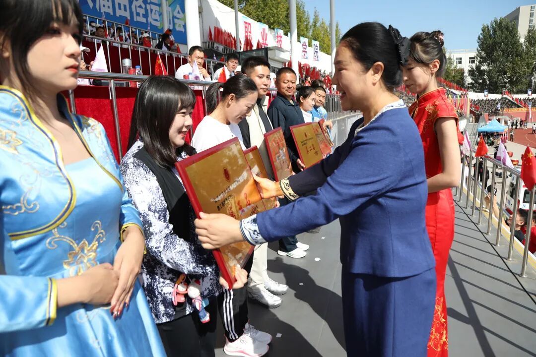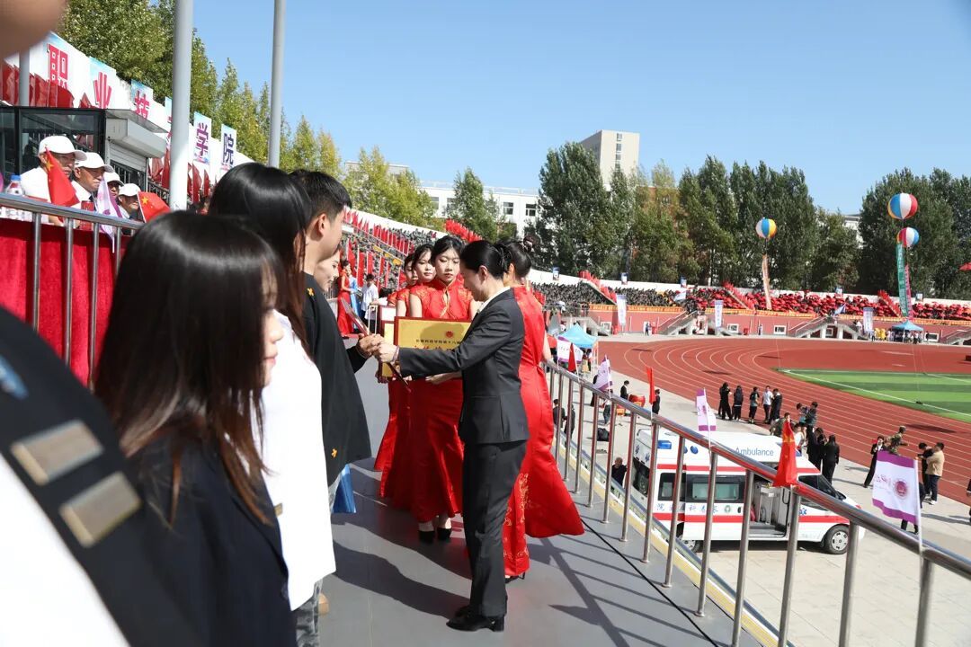 在表彰环节,党委常委孙大伟宣布了"教工组优秀运动员"名单,校长助理刘立东为获奖代表颁奖;党委副书记高芳宣布了"学生组优秀运动员"名单,党委副书记高芳为获奖代表颁奖;副校长高杰宣布了"文艺节目表演奖"评比结果,党委副书记高芳为获奖单位颁奖;副校长高杰宣布了"精神文明奖"和"优秀组织奖"评比结果,党委副书记宋学山为获奖单位颁奖。