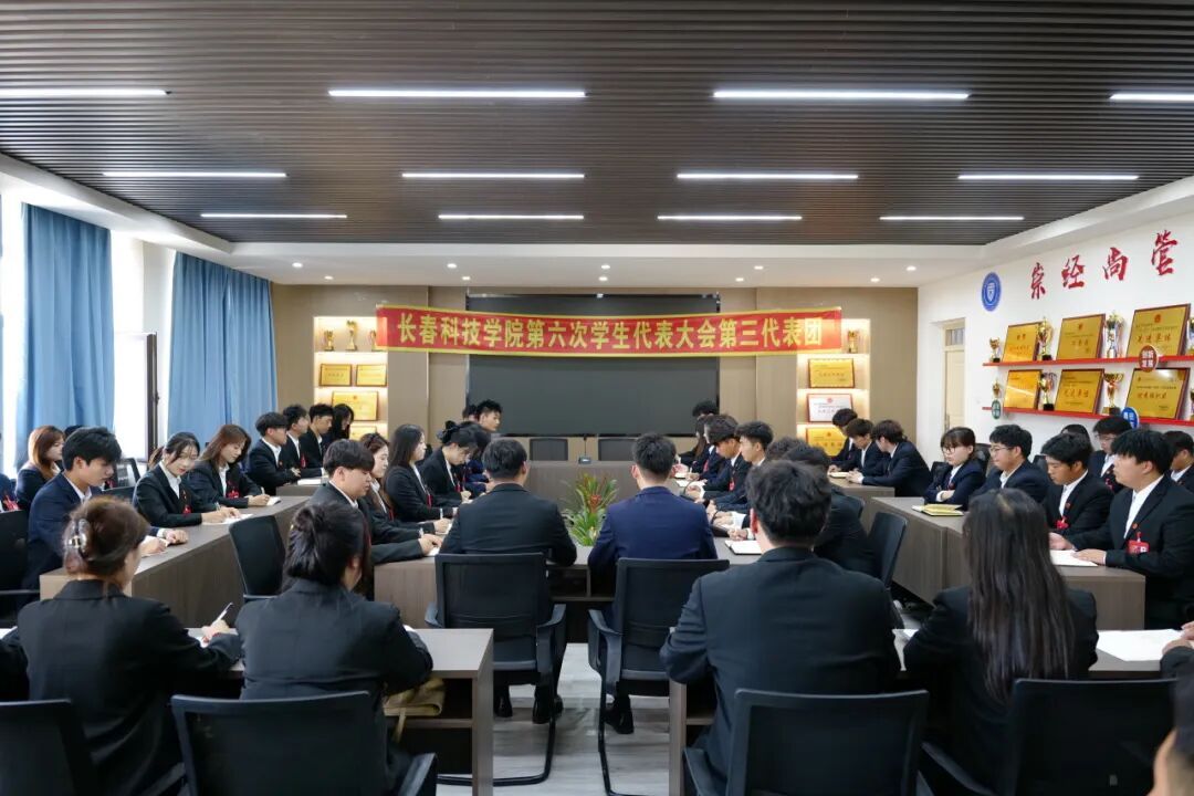 2025年9月26日上午,长春科技学院第六次学生代表大会在行政楼411会议室开幕。党委副书记宋学山,各学院党总支副书记武强、陈树森、张帅、臧连兴、王东红、山珊、张贺亮;团委书记赵雪、曹岩、张洋洋、冯也、王琳倩、韩朋、张凯旋,学工办主任杜锐、张茂志、张健、姜涛、邢艳凤、刘嘉南、姜月以及校团委全体教师。共计186名学生代表参加开幕会,会议由团委书记孙旭主持。