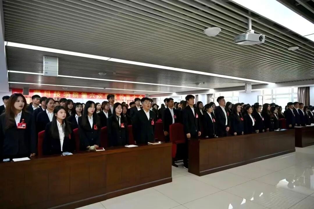 长春科技学院第六次学生代表大会圆满完成各项议程,在雄壮激昂的校歌声中顺利闭幕。
