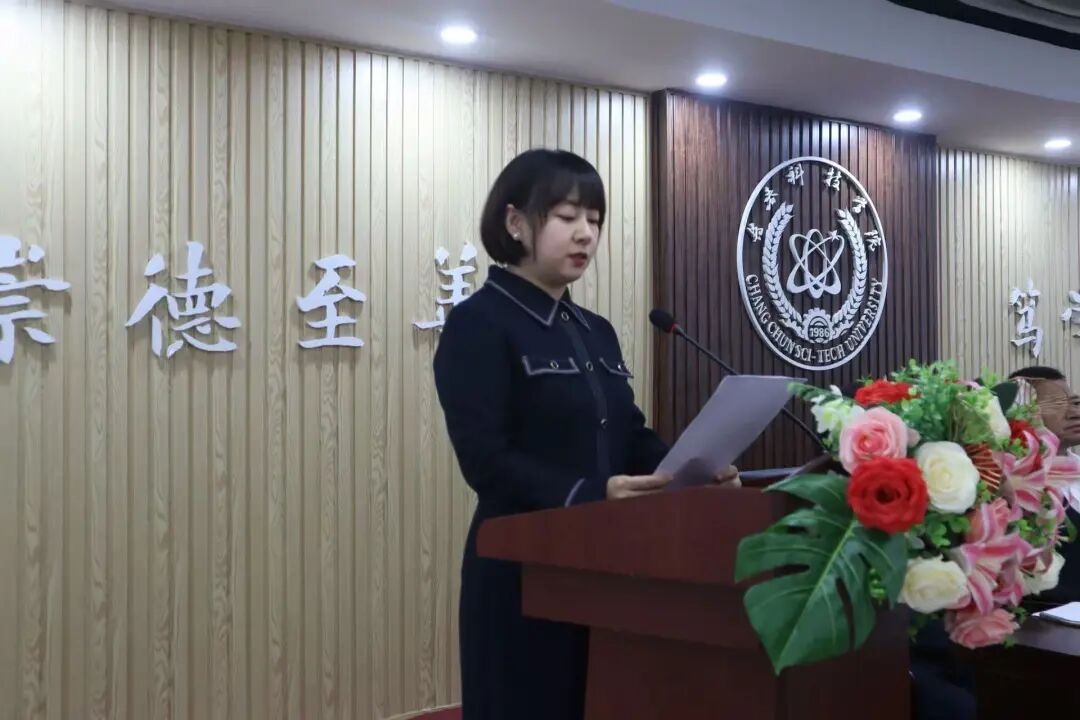 会上工作人员宣读了省学联关于学校召开学代会的批复和兄弟高校学生会对学校召开长春科技学院第六次学生代表大会的贺信以及群团组织致辞。智能制造学院团委书记赵雪代表教师团队向大会致辞。