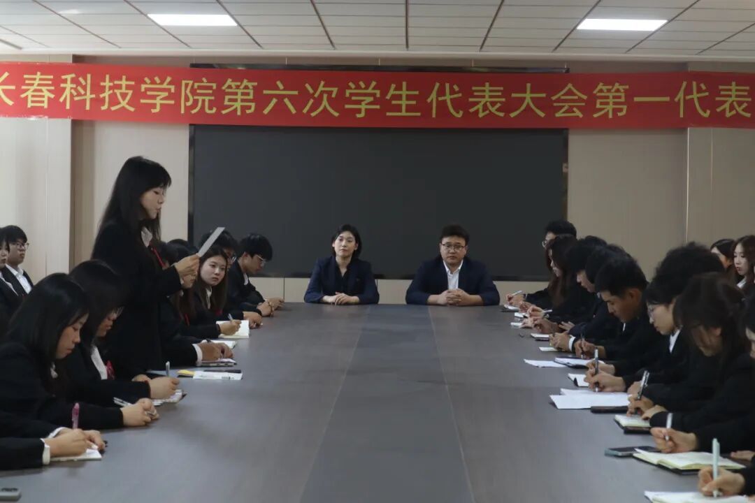 第一次全体会议由吕飓光同学主持,包幸欢同学代表学生会做了题为《踔厉奋发展韶华,秉志笃行向未来,青春勇担当,扬帆新征程带领全校学生谱写助力建设中国特色高水平学校的青春华章》的学生会组织工作报告和学代会常设机构工作报告。刘岱旭同学做了长春科技学院第六次学生代表大会提案工作报告。