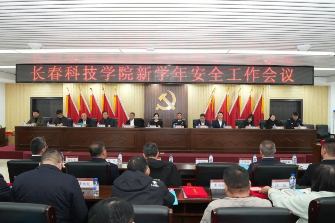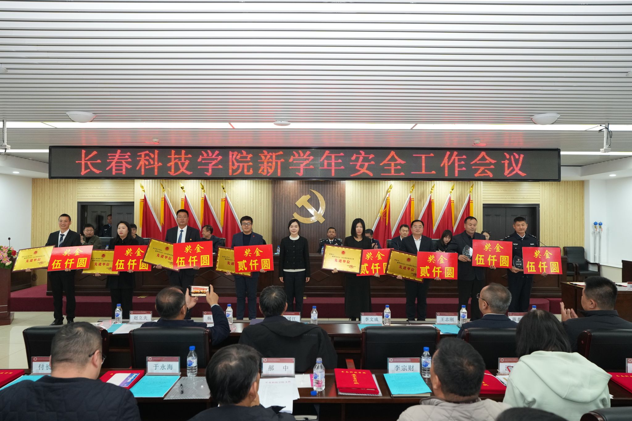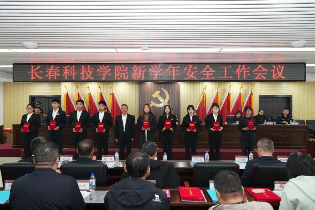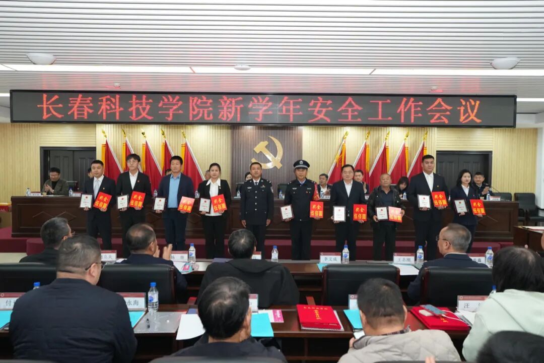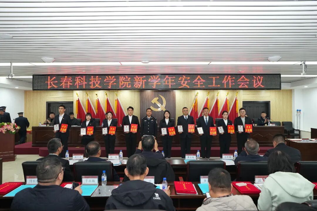 2025年10月16日下午,长春科技学院专题组织召开了新学年安全工作会议。副董事长张津格,双阳区交管大队大队长、公安分局第一副局长张习民,校长栾立明,党委书记崔高嵩,副校长张代治,党委副书记宋学山,副校长刘晓辉、高杰,校长助理刘立东,党委副书记高芳,党委常委孙大伟,各职能部门负责人,各学院院长、书记、副院长、副书记、学工办主任、分团委书记、辅导员,科学工程中心管理人员,附属医院院长、副院长、保卫科长,教学保障障部各分部经理,安全工作先进个人和优秀安全监理员代表等190余人参会。