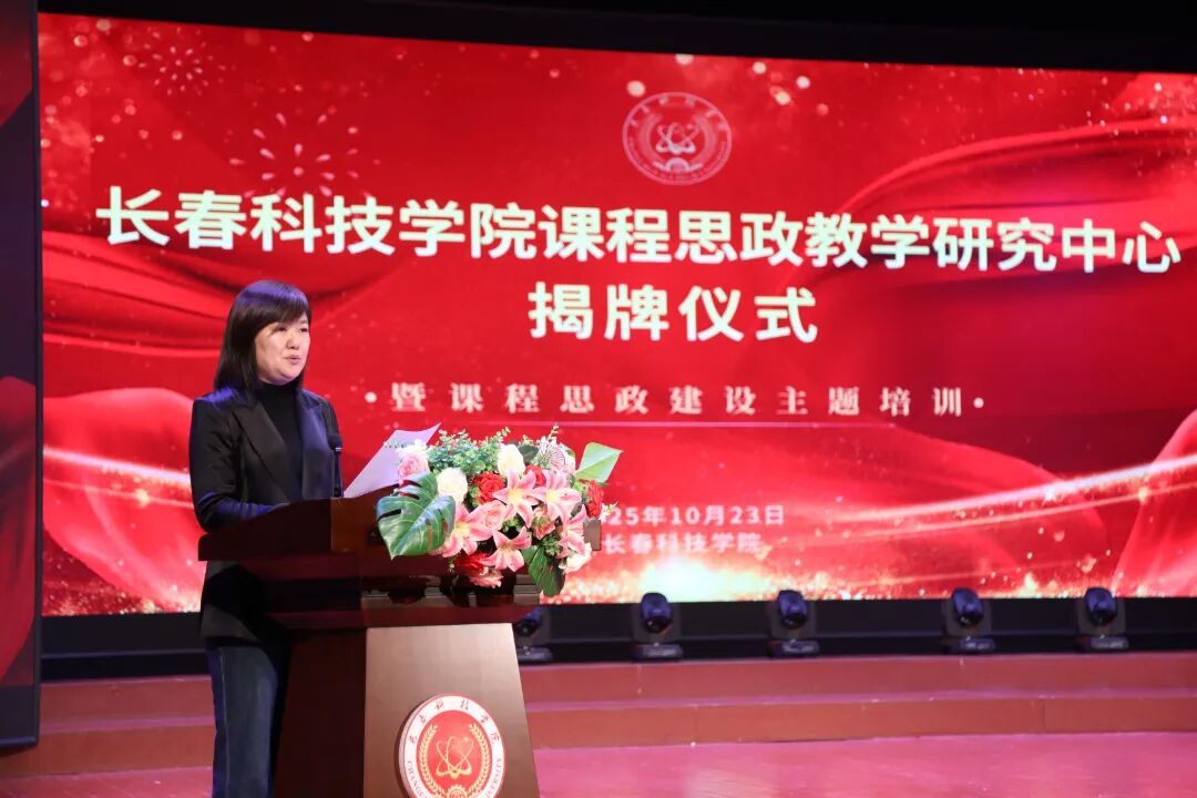 仪式上,党委副书记高芳宣读《长春科技学院关于成立课程思政教学研究中心的党委文件》。由学校教务处处长、课程思政教学研究中心主任宋卓,详细介绍了中心的建设规划。