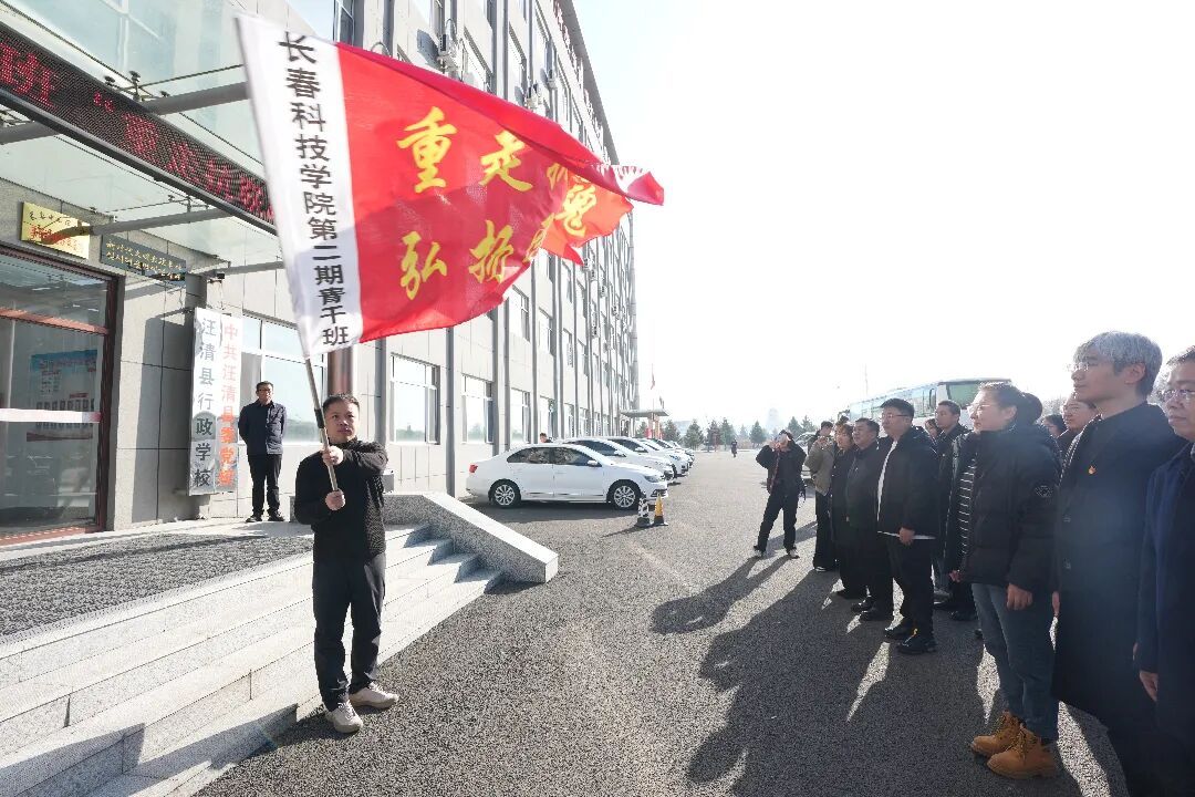 在汪清县委党校门前,长春科技学院第二期青干班举行了隆重的“重走抗联路”出发仪式。出发仪式在集体奏唱国歌中拉开序幕,随后汪清县委党校副校长王振京为培训班授旗,班主任高杰带领全体学员进行宣誓。