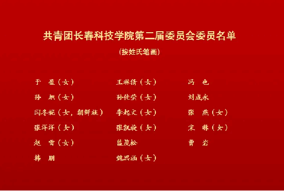 会议选举产生了新一届共青团长春科技学院委员会书记、副书记。