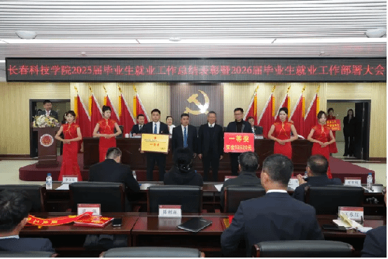 为树立典范,激励先进,孙大伟处长宣读了《长春科技学院2025年度就业工作表彰奖励的决定》。校长栾立明、党委书记崔高嵩等学校领导为受表彰奖励的就业优秀个人代表、“达标单位”、“先进集体”及“突出贡献单位”进行颁奖。热烈的掌声不仅是对过去一年辛勤付出的肯定,更是对再接再厉、再创佳绩的殷切期望。