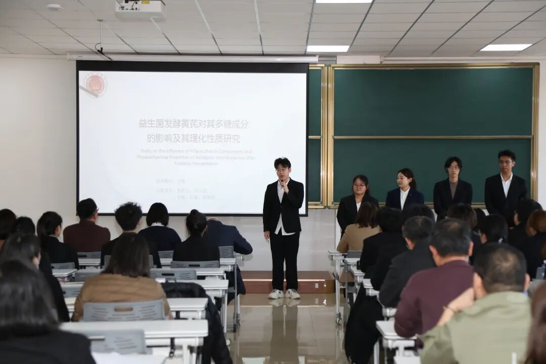 公开课的实践考核环节同样亮点纷呈——22级全体生物工程专业学生随即展开团队项目答辩。各团队围绕“生物膜的开发”“大豆遗传育种”“天然产物开发”“生物制药”等自主研发的项目,从方案设计、实验实施、数据论证到成果转化前景进行全流程汇报。答辩现场组建了由特研生物研发经理冷森林、校教学督导贾冬舒、生命科学学院副院长尤丽新、生物工程专业主任刘艳,及专业核心教师组成的四方指导评审团,从不同维度为学生项目“把脉问诊”。面对评审团的连环提问,学生们沉着应答,结合前期实验积累展开论证。充分展示项目式教学提高学生自主能动性,创新性及对知识的应用能力。