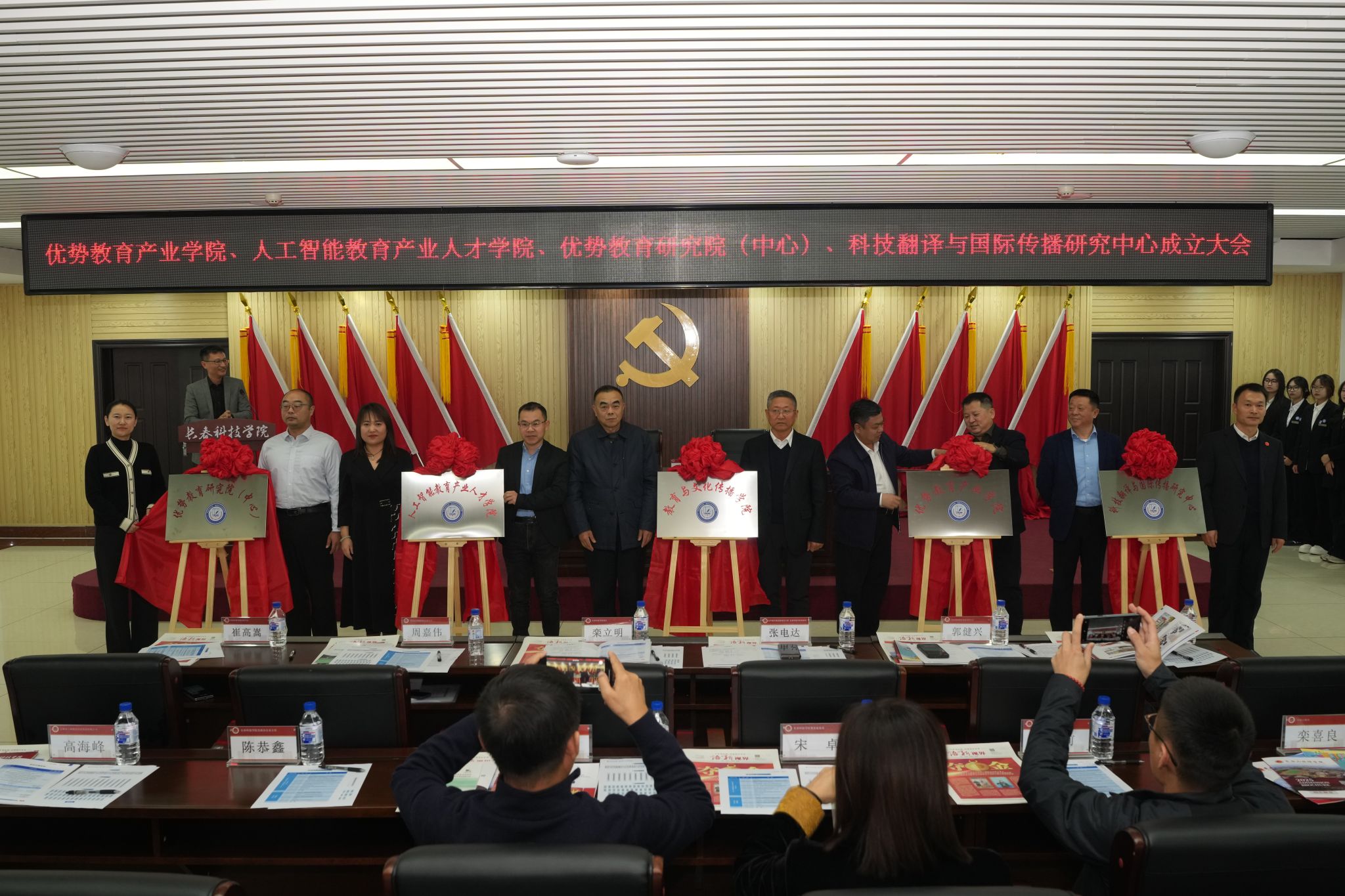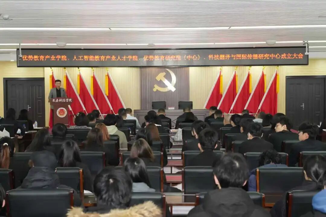 2025年11月20日上午,长春科技学院教育与文化传播学院更名仪式暨“三院一中心”成立大会在行政楼409会议室隆重举行。“三院一中心”分别为:优势教育产业学院、人工智能教育产业人才学院、优势教育研究院(中心)、科技翻译与国际传播研究中心。长春科技学院董事长张电达、校长栾立明、党委书记崔高嵩、党委副书记宋学山、副校长高杰、校长助理刘立东、党委副书记高芳、党委常委产业学院领导办公室主任孙大伟、党政办公室主任陈恭鑫、教务处处长宋卓、科研处处长陈前等校领导及职能部门负责人出席大会,教育与文化传播学院院长唐敬仙主持会议。