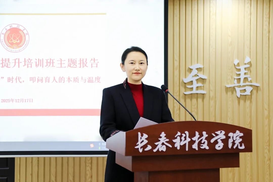 为积极应对人工智能对教育领域的深刻影响,11月17日,长春科技学院党委宣传部在行政楼411会议室举办“AI赋能・铸魂育人”网络育人能力提升培训班。校党委书记崔高嵩作主题报告,副书记高芳主持会议。各学院党总支副书记、全体辅导员、马克思主义学院教师代表及学生代表参加培训。