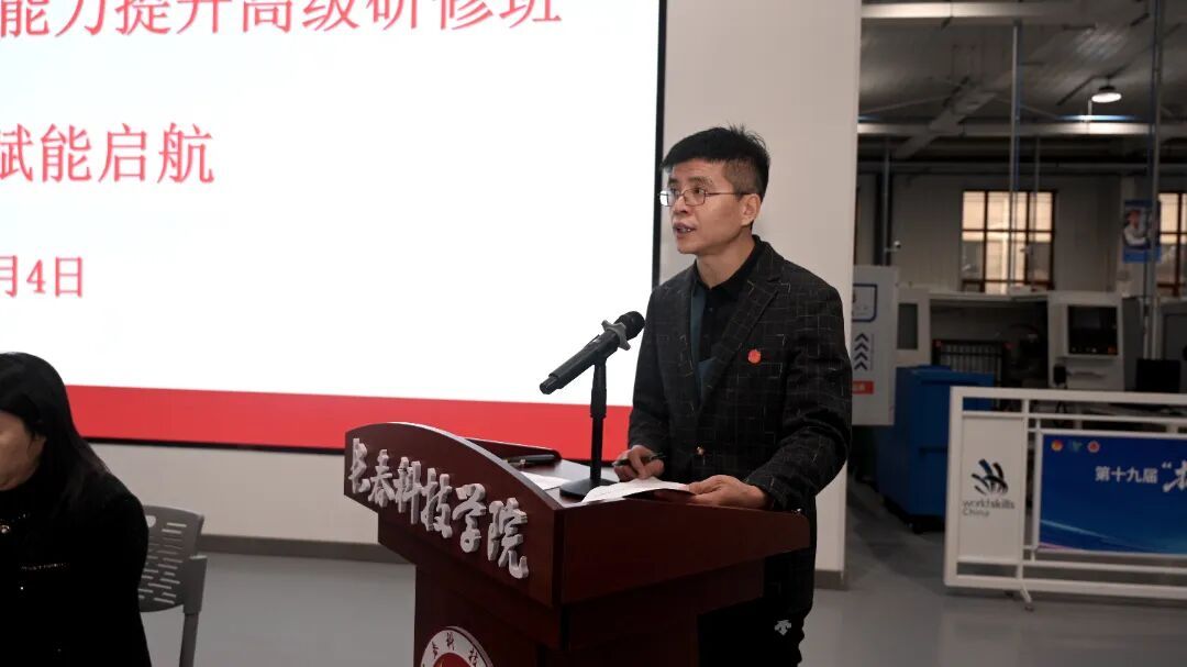 东华教育集团董事局主席、长春科技学院董事长张电达在致辞中,将教师定位为“学校发展的核心竞争力”,并明确表示学校始终将师资培养置于战略高度。他对全体参训教师提出殷切期望:“希望大家珍惜这来之不易的学习机会,以饱满的热情、积极的态度投入到研修中,真正做到学用结合、知行合一,把研修中学到的前沿技术和先进教学理念,切实转化为课堂教学的实效,培养出更多符合产业需求的优秀人才。”