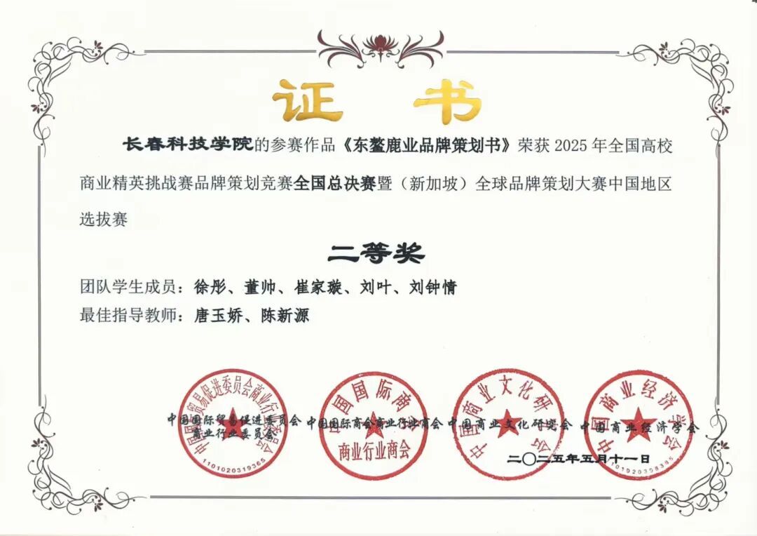 在全国高校商业精英挑战赛品牌策划竞赛全国总决赛暨(新加坡)全球品牌策划大赛中国地区选拔赛、国际大学生创新大赛、“挑战杯”、全国大学生生命科学竞赛等高水平赛事中,研究院师生团队斩获国家级、省级奖项数十项。多个项目聚焦鹿产业、不老莓、人参等吉林特色资源,实现科技创新与产业应用深度结合,彰显研究院“以赛促教、以赛促创”的育人特色。