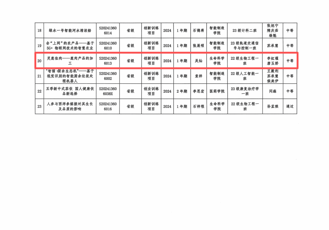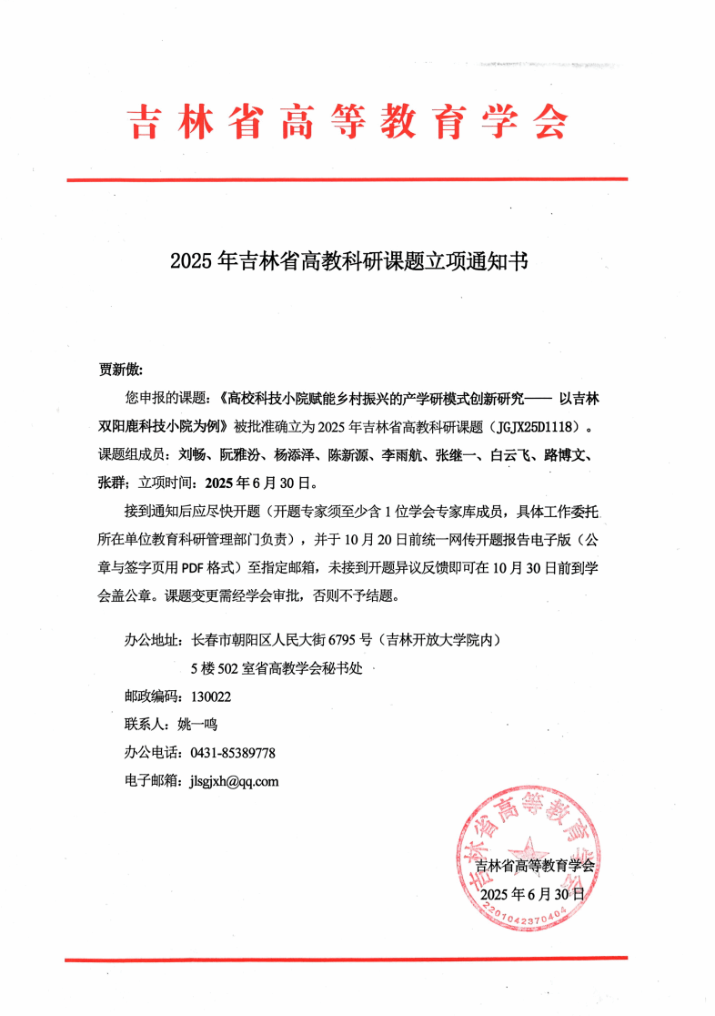 全年共有多项国家级、省级大学生创新创业训练计划项目及高教科研课题顺利结项,涵盖鹿产品加工、功能食品开发、乡村振兴与科普教育等方向,形成了一批可持续推进的成果储备。