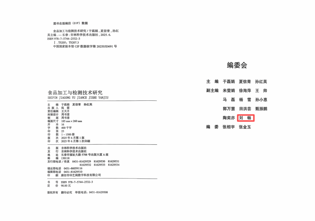 研究院唐玉娇教授和刘畅教师出版专著2部,杨添泽老师获批软件著作权2项,唐玉娇教授和杨添泽老师分别在《Journal of Microbiology and Biotechnology》和《中国饲料》发表高水平论文,科研成果在数量与质量上实现双提升。