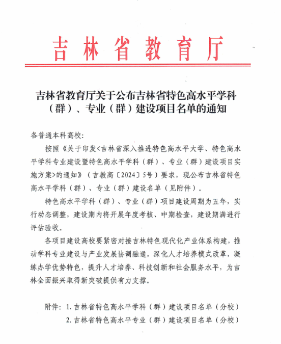 2025年3月,吉林省教育厅公布吉林省特色高水平学科(群)、专业(群)建设项目名单。我校生物与医药、食品与营养、参茸文化传播等3个学科(群)获批立项, 实现了我校在省级特色高水平学科建设领域的重大突破,是学校多学科协同、跨学科融合、超学科创新,持续推进学科建设取得的标志性成果;是学校扎根吉林,服务地方,统筹优化学科专业布局的有效见证。生物与医药、农业、食品与营养3个学位点,不断强化内涵建设,全面实现提档提质,继续与吉林农业大学、吉林财经大学、长春大学等高校开展硕士研究生联合培养工作,现有博士研究生导师3名,硕士研究生导师42人,累计联合培养硕士研究生55人。