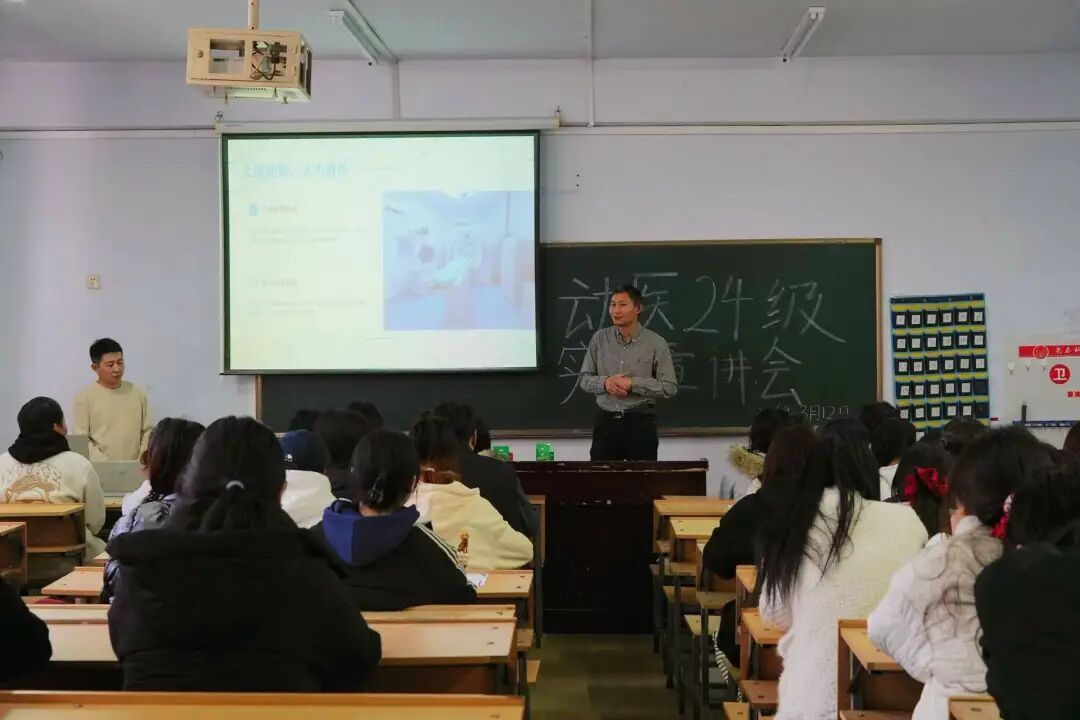 各企业聚焦宠物临床诊疗、畜禽疫病防治、兽药研发、动物检疫等方向,强调实操能力与专业素养的重要性,并介绍实习就业机会与行业前景。在互动环节中,学生围绕实习内容、执业兽医备考及转正标准等踊跃提问,企业代表逐一细致解答,现场初步达成多项实习意向。