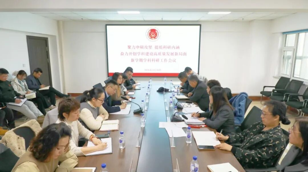 聚力申硕攻坚,提质科研内涵,奋力开创学科建设高质量发展新局面。3月20日,学校在行政楼608会议室召开2026年新学期学科科研工作会议。校长王淑坤,主管副校长,各教学单位负责人、科研负责人,科研处、学科建设办公室全体人员参加会议。会议由科研处处长、学科建设办公室主任陈前主持。