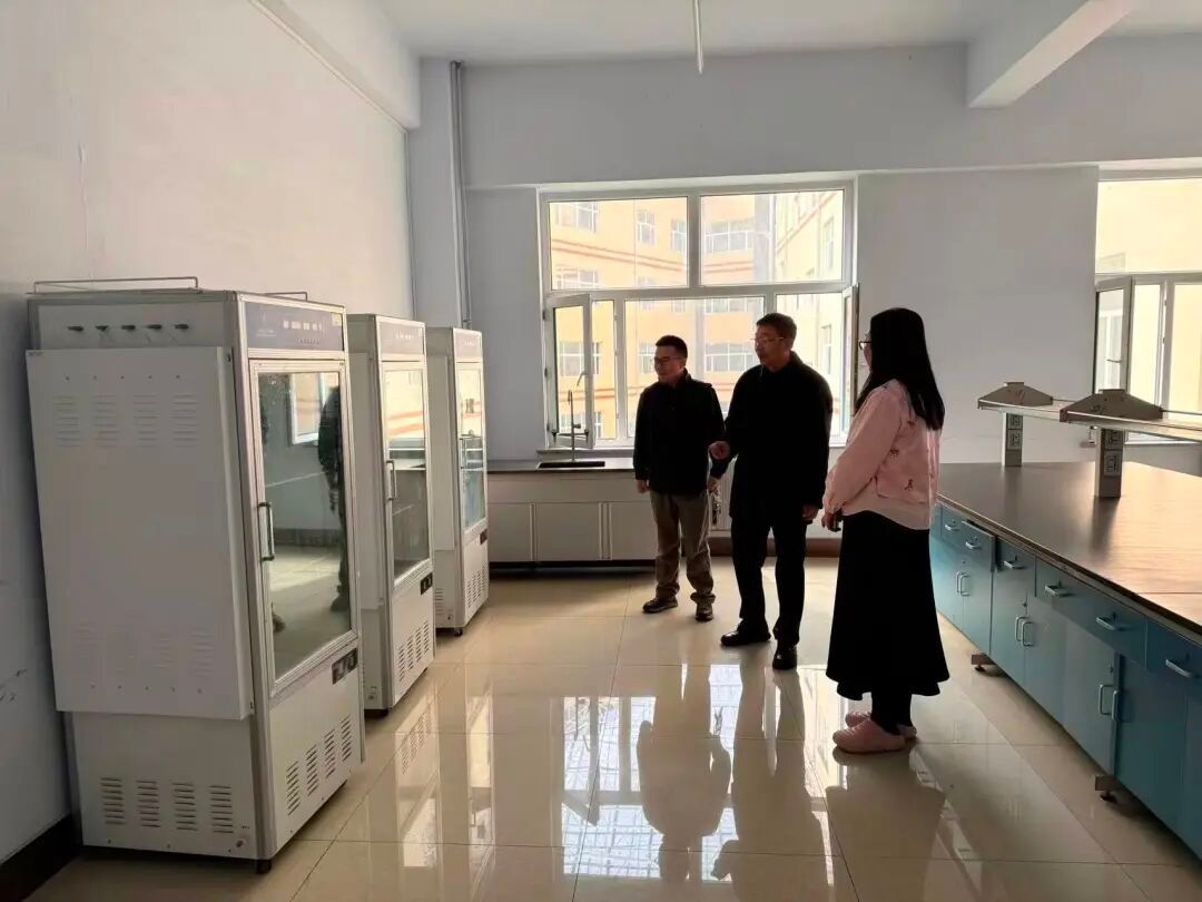 随后,李国江院长一行先后前往生物工程、动物医学、应用化学专业实验室,实地检查建设进度、仪器配备、功能区布局及日常运维管理情况。李国江院长细致查看实验教学场地与器材保障,深入了解各专业教学需求与实验室运行痛点,并就建设管理工作提出明确要求。他指出,实验室是应用型高校实践教学的核心阵地,直接决定人才培养质量。要紧盯学生核心实验需求,加快补齐软硬件短板,规范全流程管理,筑牢实验安全防线,打造贴合专业发展、满足教学刚需的现代化实验环境,夯实实践教学根基,助力学生提升实践能力与综合素养。