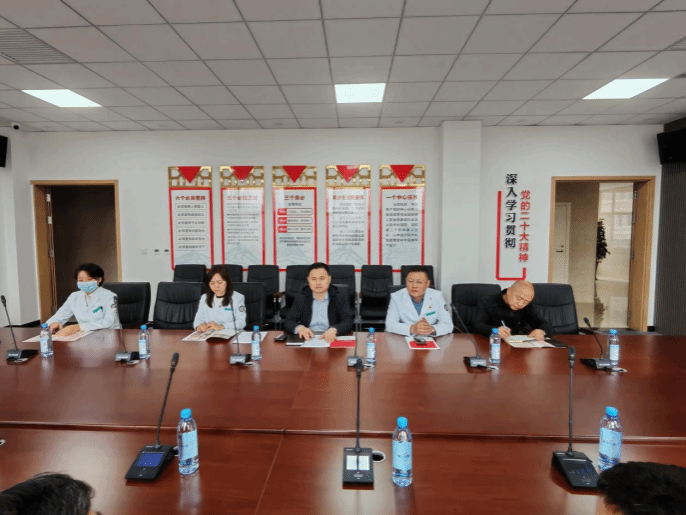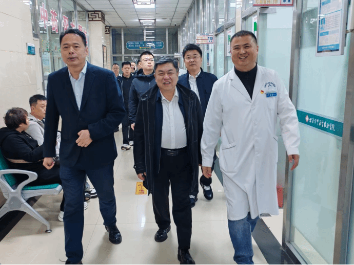 走访第一站来到前郭尔罗斯蒙古族自治县中医院。医院党委书记徐振生,副院长李玉琢、李岩亮,工会副主席、党办主任、院办主任李松涛,医务科科长朱岩热情接待了考察组一行。崔高嵩书记一行首先深入医院区域,实地察看医院诊疗环境、医疗设备配置和科室建设情况,详细询问医院人才需求、实习带教、岗位设置等相关事宜,全面了解医院发展现状与用人诉求。