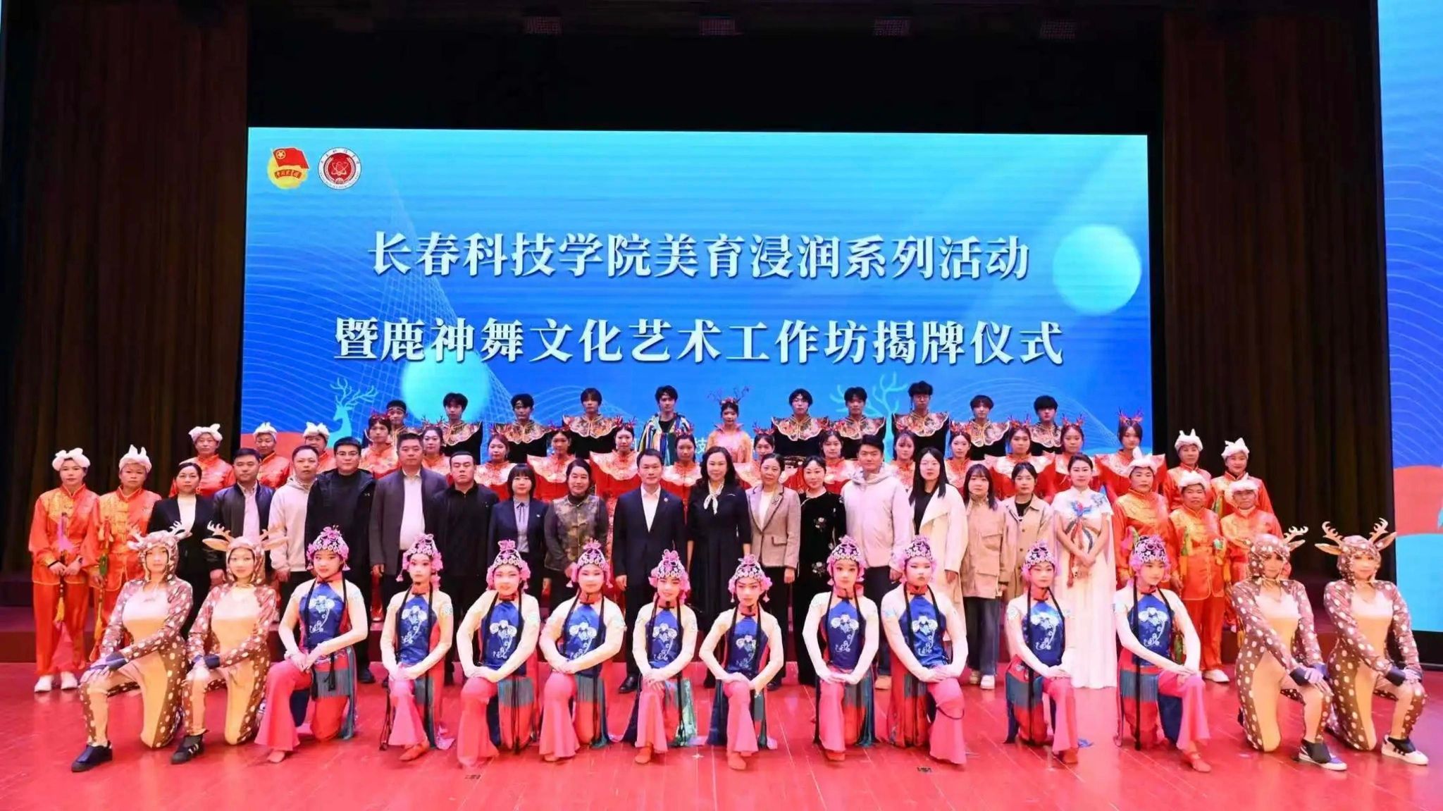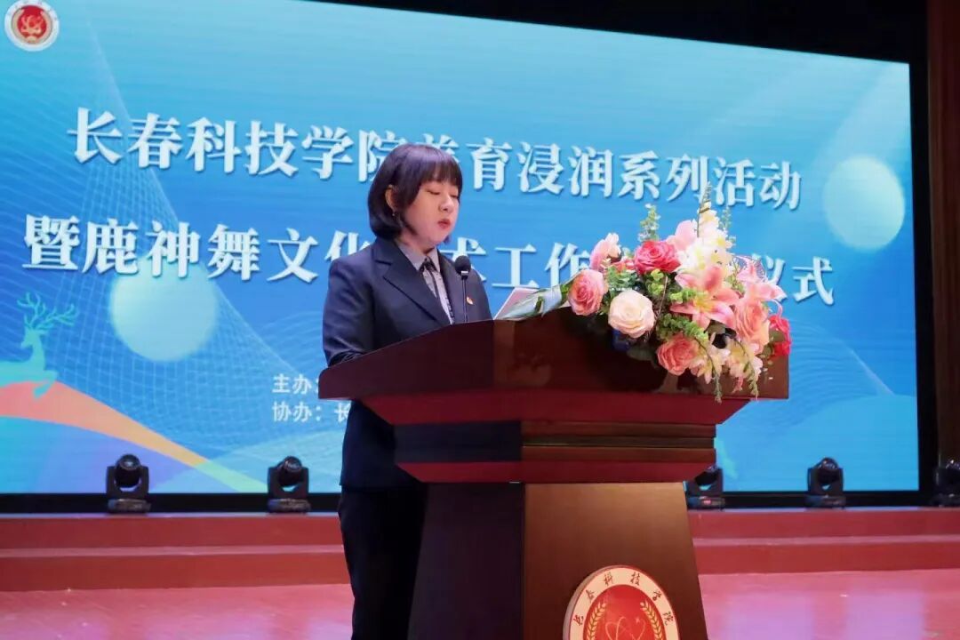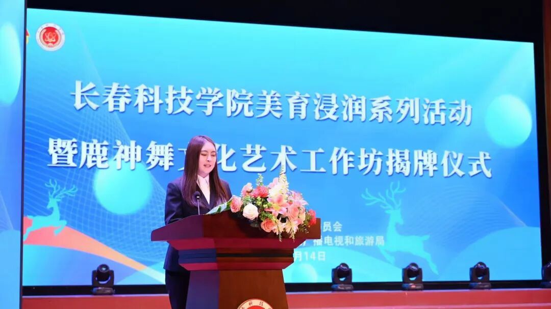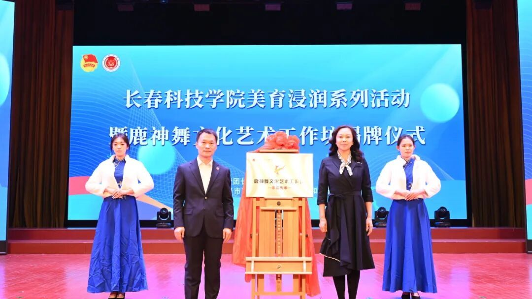 为落实立德树人根本任务,深耕校园美育建设,以美育人、以文化人,大力弘扬中华优秀传统文化,推动非物质文化遗产传承与高校美育深度融合,扎实推进非遗进校园工作,4月14日,长春科技学院团委在东鳌学术论坛国际会议中心,举办长春科技学院美育浸润系列活动暨鹿神舞文化艺术工作坊揭牌仪式。