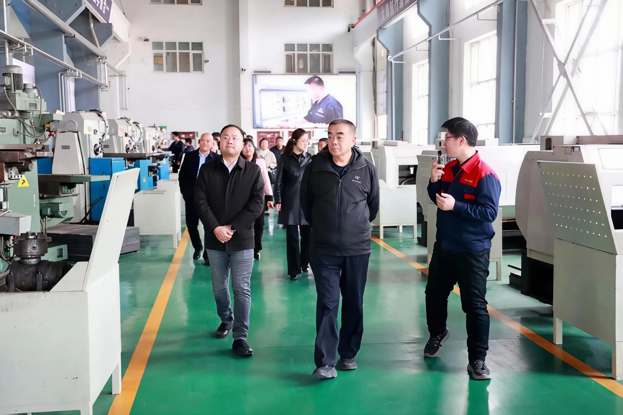考察团先后实地走访校园、大健康实训中心、新能源汽车实训中心、齐三机床产教融合基地等实践育人平台,详细了解该校实训基地建设、专业布局、产教融合一体化发展模式及办学特色。
