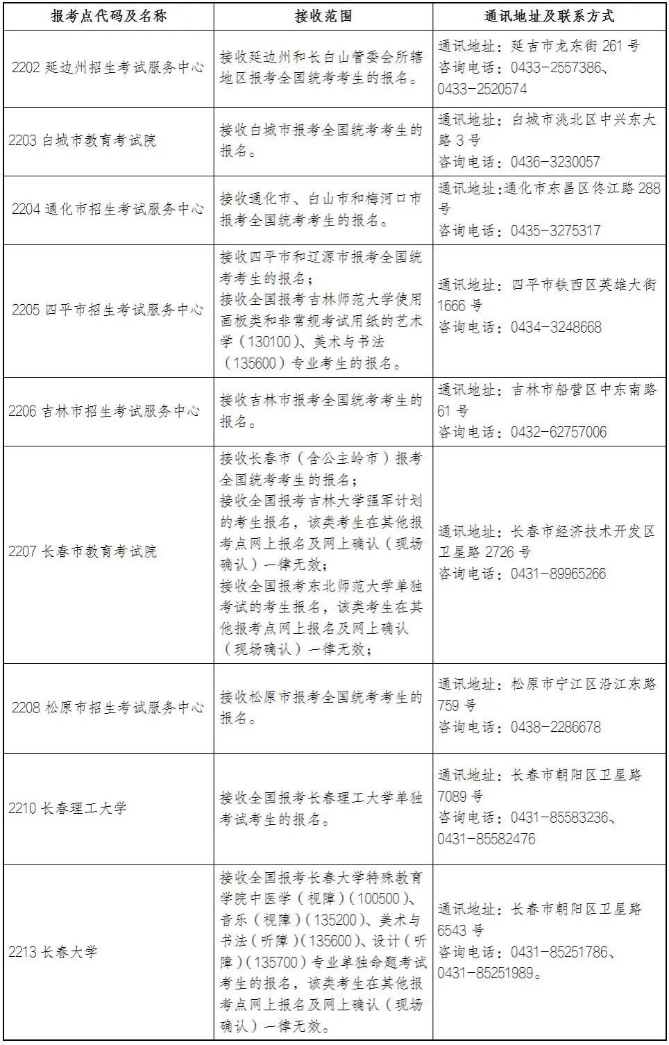 吉林省2026年报考点设置情况如下。
