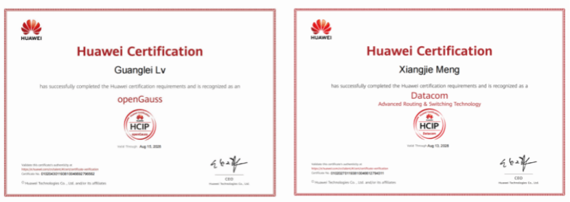 此次两位教师成功通过HCIP认证,不仅彰显了我院教师过硬的专业素养与积极进取的职业精神,更对学院学科建设与校企合作具有重要意义。作为学院与华为公司共建华为信息与网络技术学院(华为网院)的关键支撑,认证教师将更精准地对接华为技术标准与产业人才需求,助力优化课程体系、革新实践教学模式,为培养符合行业发展需求的高素质信息技术人才提供有力保障,也为后续深化与华为公司在人才培养、技术研发、实习就业等方面的合作奠定了坚实基础。