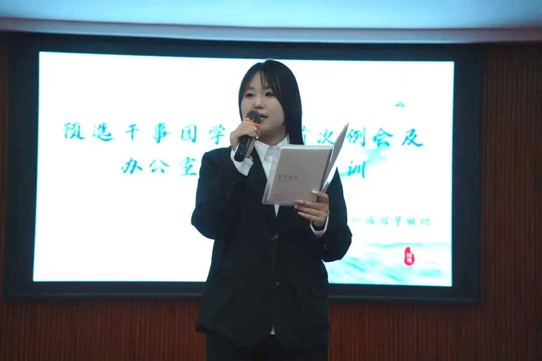 为欢迎2025级团学组织预选干事,强化学生干部队伍建设,提升工作效率与规范性,10月23日,智能制造学院团学组织在一教六楼报告厅成功召开了本学期第一次全体例会暨办公室值班培训会。