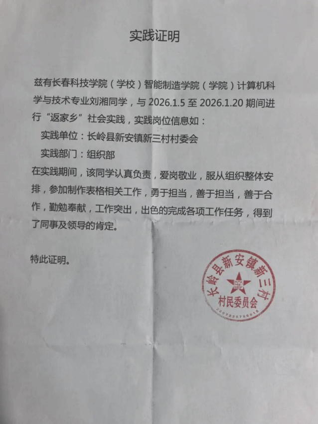 情暖寒岁添暖意,青春践行显担当!为扎根基层沃土,书写青春华章,智能制造学院积极响应号召,组织学子参与2026年寒假“返家乡”社会实践活动,躬身实践、传递温情、不负韶华。