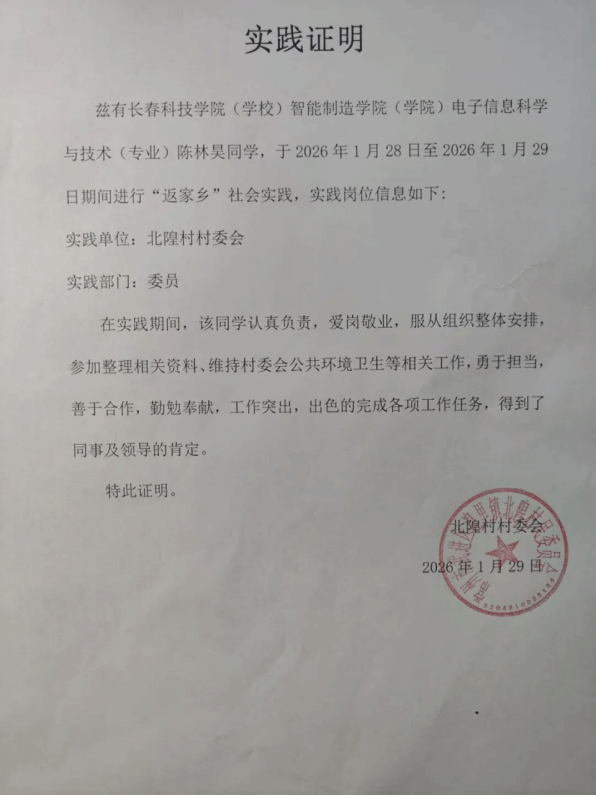 情暖寒岁添暖意,青春践行显担当!为扎根基层沃土,书写青春华章,智能制造学院积极响应号召,组织学子参与2026年寒假“返家乡”社会实践活动,躬身实践、传递温情、不负韶华。